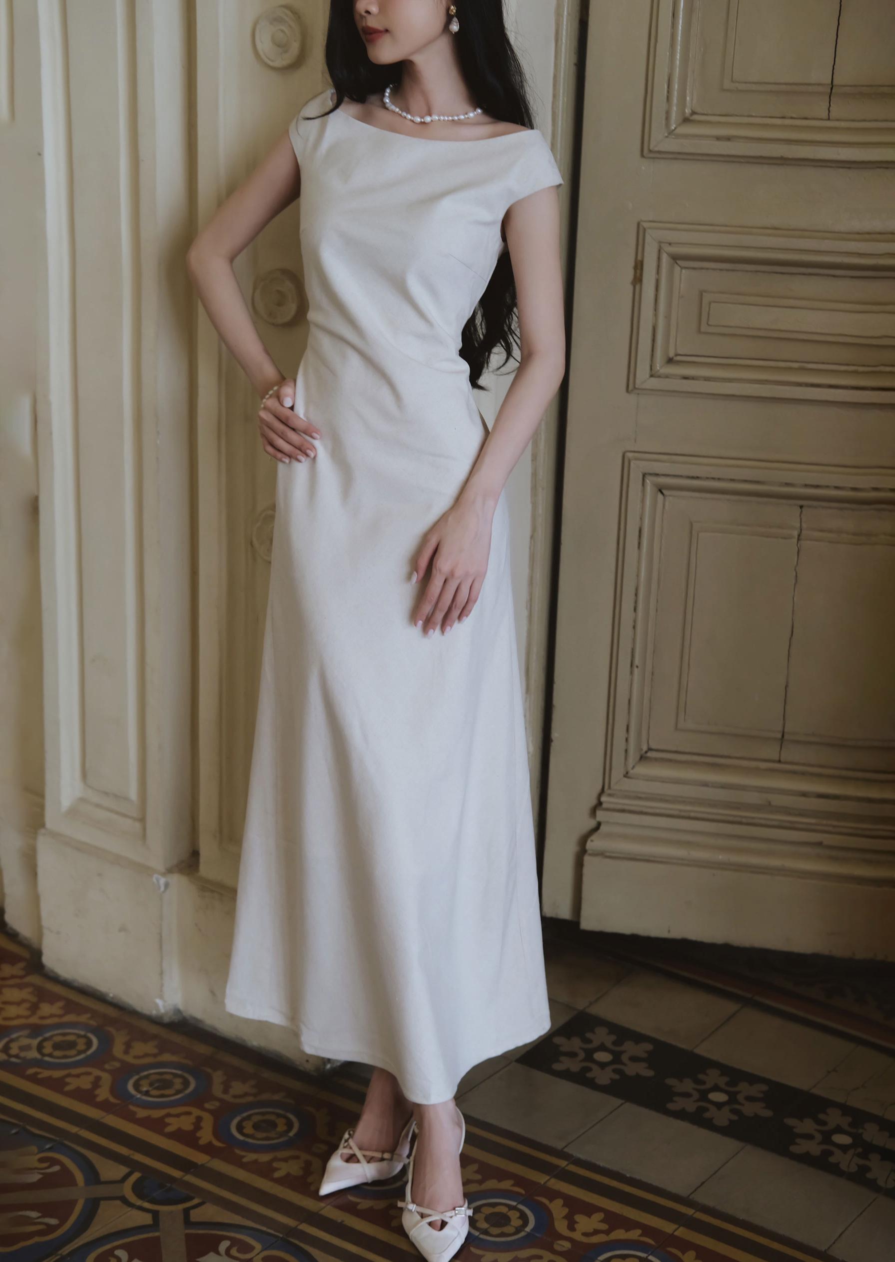 Lilas Midi Dress – Linen – Beige
