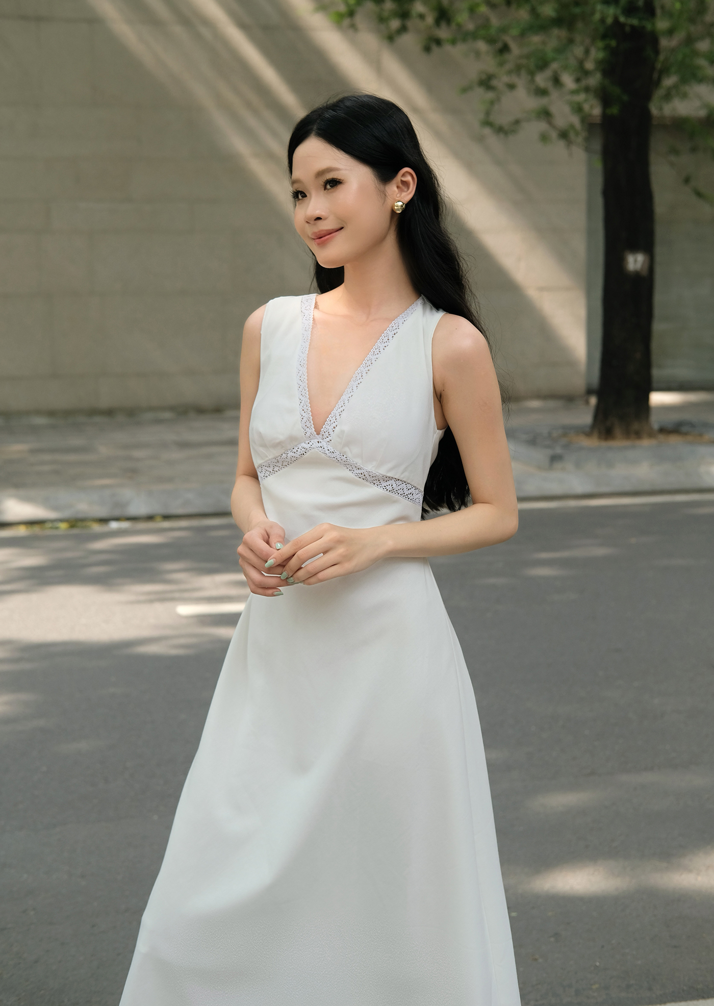The Nami Dress is a refined, feminine silhouette featuring delicate embroidered lace-trim edges and a softly structured fit. Designed to contour the waist and gently shape the hips, it creates a subtle hourglass effect while maintaining comfort and ease. Crafted from premium pre-treated Korean linen and finished with a smooth habutai lining, Nami offers an elevated, breathable feel—perfect for warm days and elegant occasions alike.